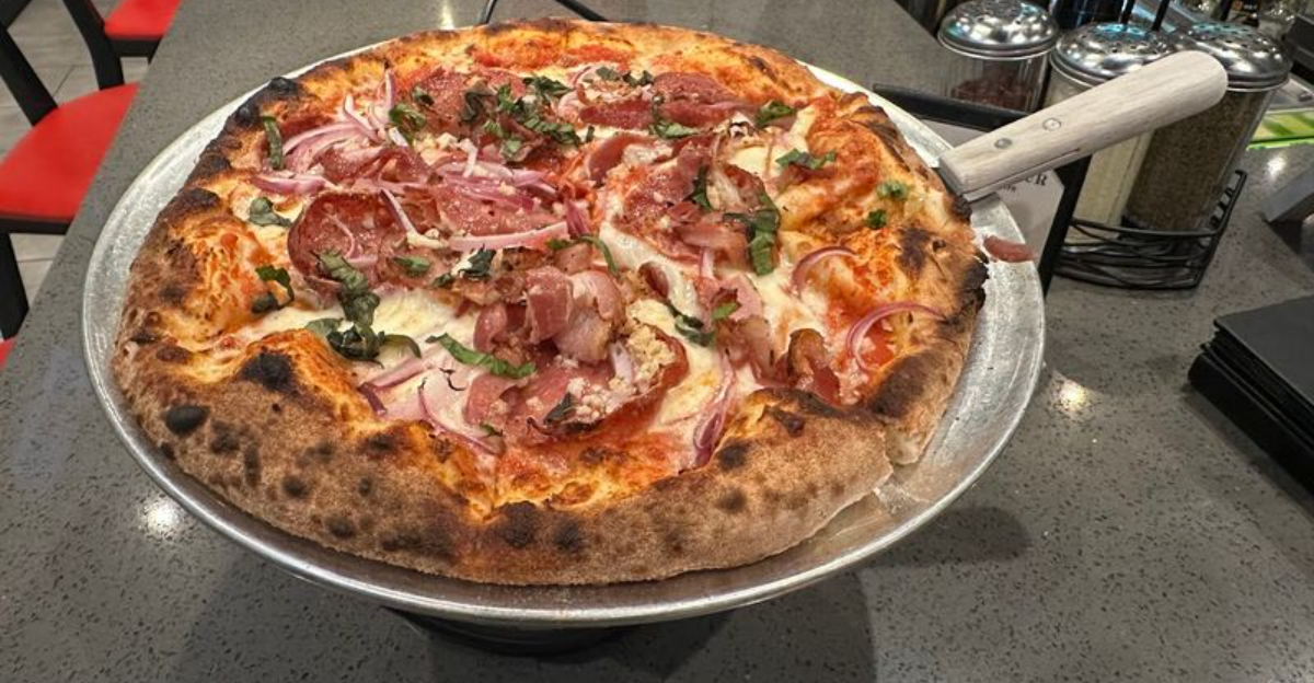 Disney Springs is packed with dining options, but Red Oven Pizza Bakery manages to stand out even in that crowded lineup. The pizzas are quick-fired in a custom stone oven, producing a thin, crackly crust that tourists and locals both appreciate after a long day of walking around the parks.