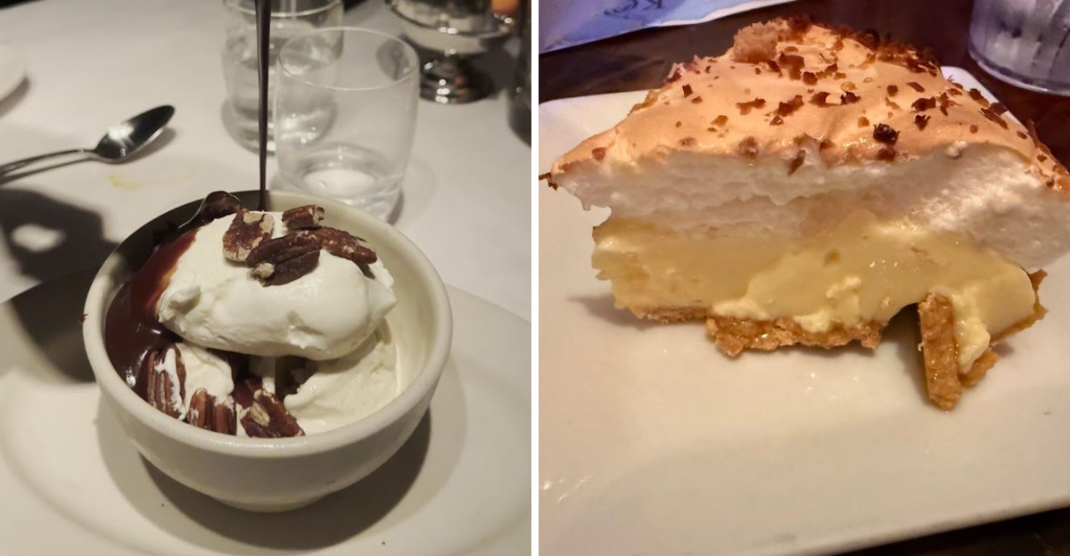 The banana foster is the star of the dessert menu, made tableside with flambeed bananas, rum, and a scoop of creamy vanilla ice cream. The lobster Reuben might get the press, but dessert-lovers know the real reason to come back.