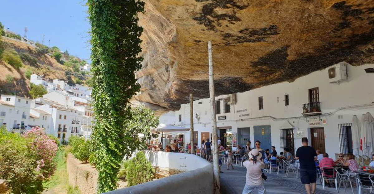 Imagine having a mountain as your ceiling. That is everyday life in Setenil de las Bodegas, a small Andalusian village where buildings are literally tucked beneath enormous rock overhangs.