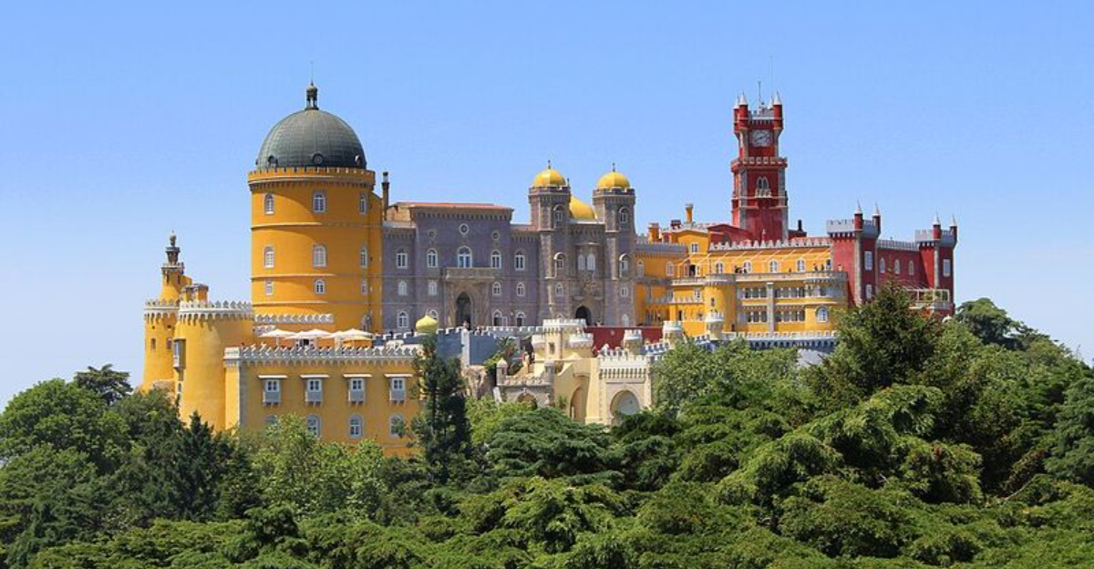 Colorful palaces emerge from misty forests like something from a fantasy novel. The Pena Palace crowns one hilltop in bright yellows and reds, visible for miles around.