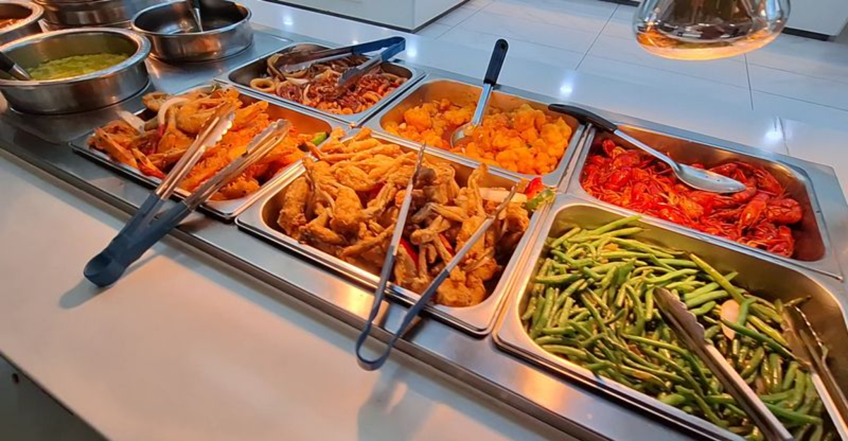 Stir-fried noodles, steamed dumplings, and saucy chicken share space with roasted vegetables and a few kid-friendly options. The buffet line stays tidy, and the room feels relaxed. Desserts offer light sweetness without overcomplicating the finish.