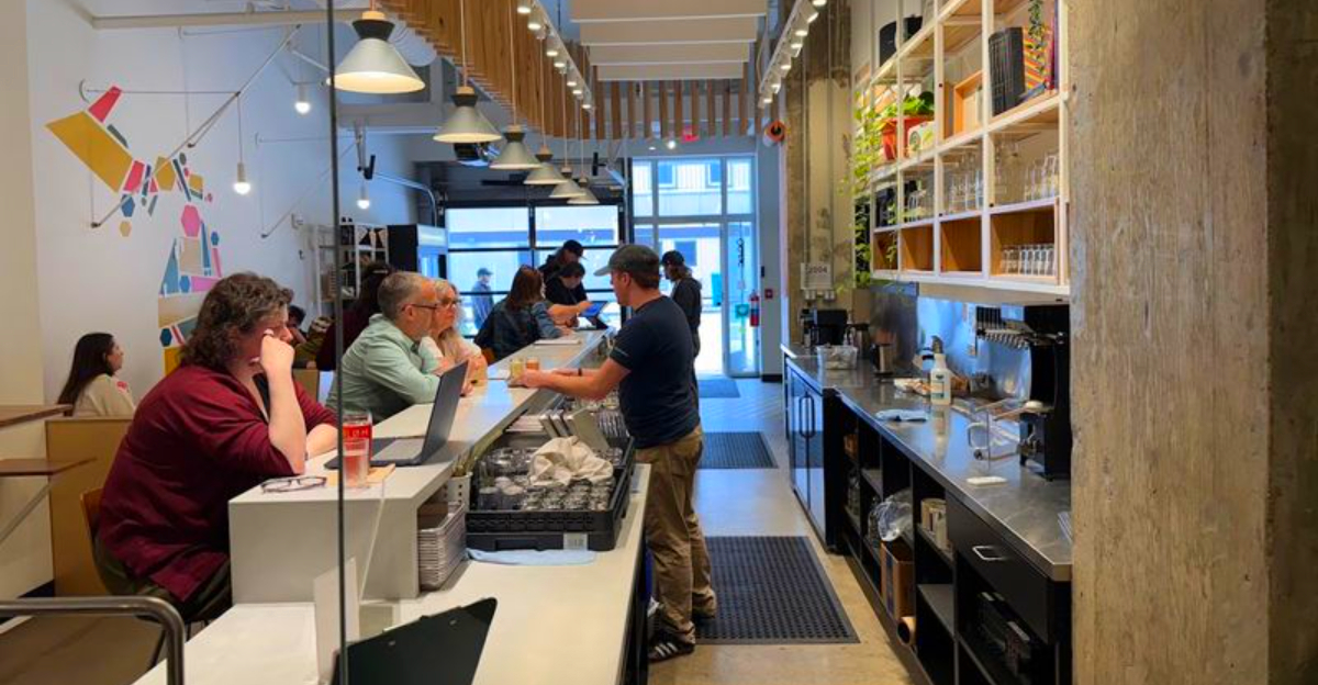 The service style fits the rest of the room: friendly, patient, and community-minded. That matters because the whole concept depends on making an unfamiliar category feel approachable.