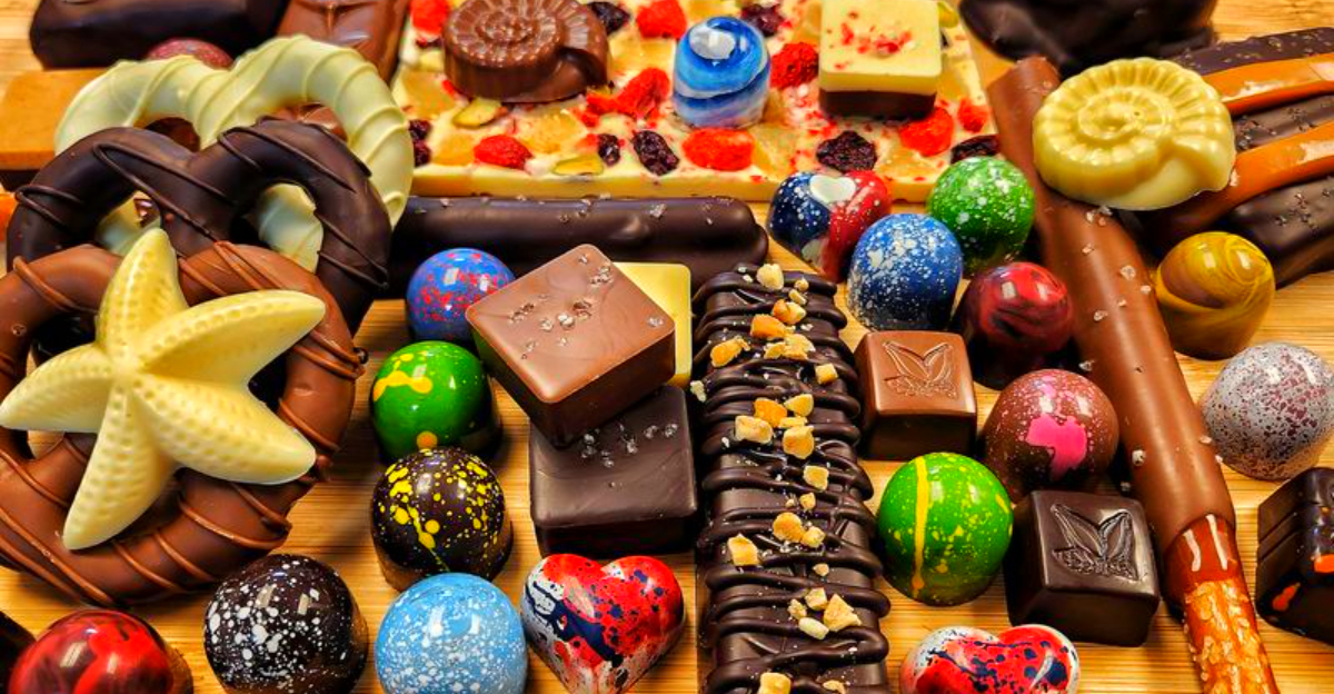 Chocolate Wave rides the coastal theme with shells and starfish molded in silky chocolate. You can taste the ocean breeze in their sea salt caramels, balanced and not too sweet. Truffle assortments feature seasonal notes like peppermint and champagne.