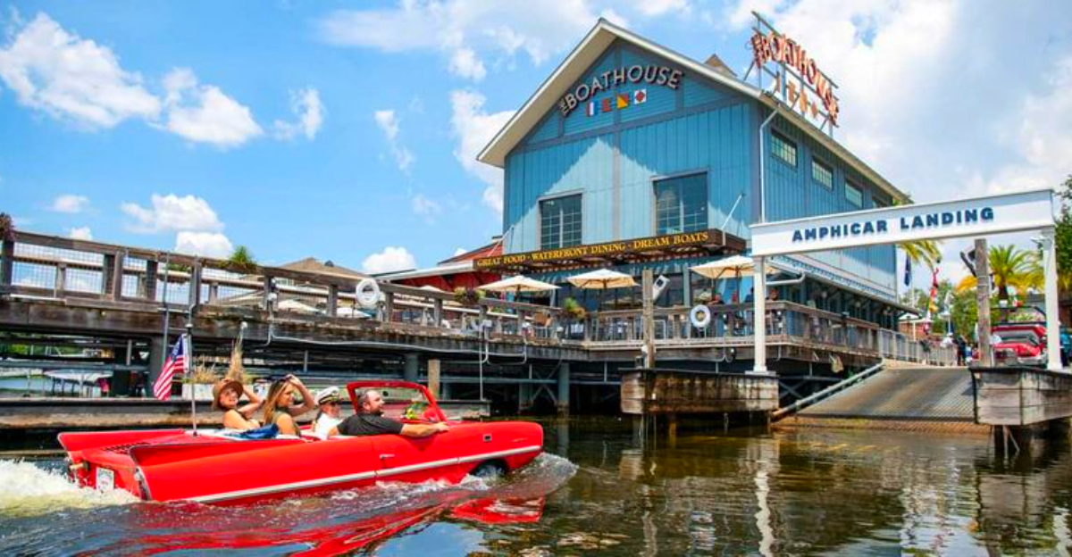 Those vintage Amphicar rides add extra magic to your meal. You can actually cruise around the lake in a car-boat hybrid before or after dinner. Classic cocktails and stunning sunset views complete the experience.