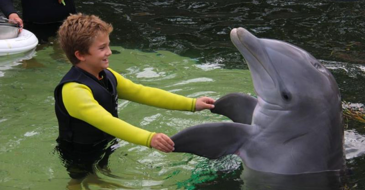 Dolphin kisses and gentle foot pushes highlight the interactive programs designed for all skill levels. The shallow-water encounters allow non-swimmers to participate safely.