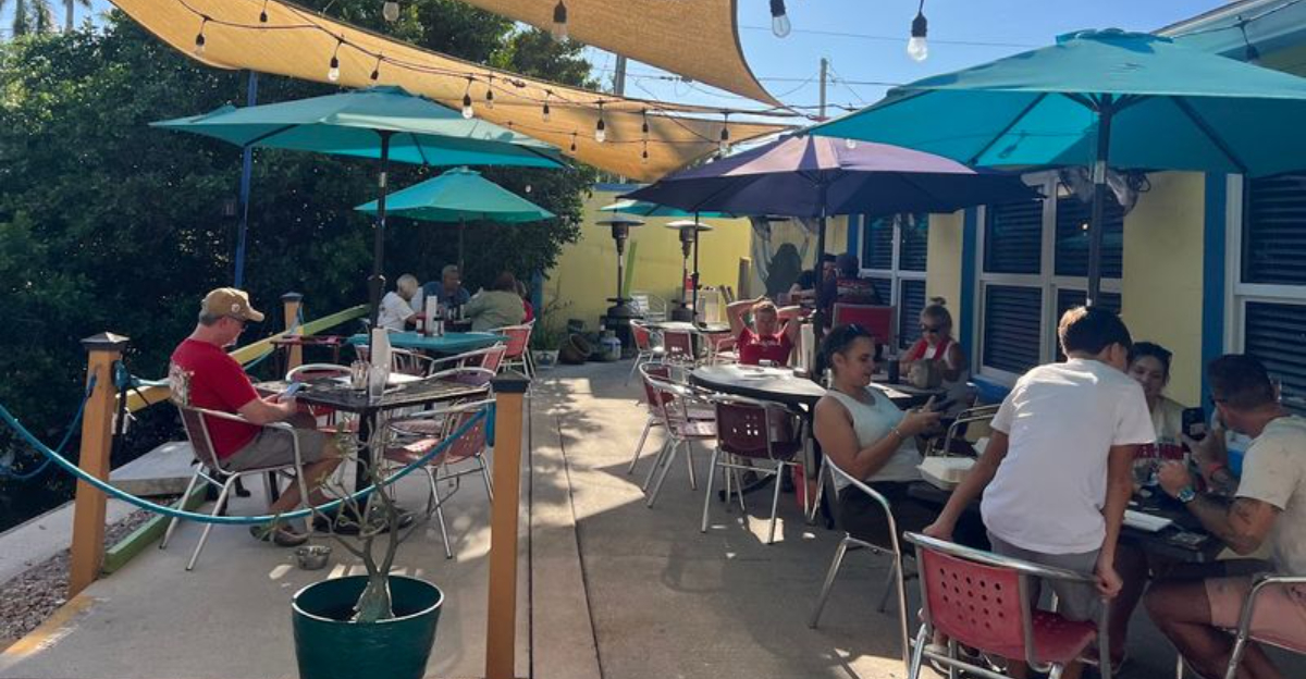 There is a little waterfront spot in Southwest Florida where the painted walls are bright, the seafood is fresh, and the locals keep coming back week after week. It sits right on the edge of a canal, and on a good day, the breeze off the water carries the smell of something delicious straight to you before you even reach the door.