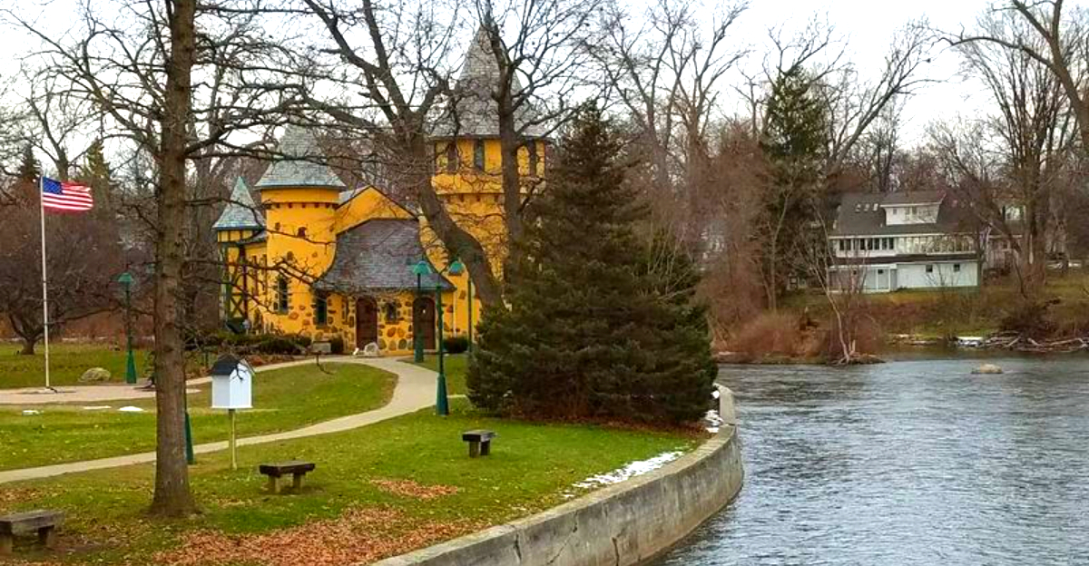Michigan has a real castle, and it is not a replica or themed attraction. Built in 1922 in a small riverfront town, this Norman chateau-style structure features a round tower, stone construction, and a design that stands out immediately from anything around it.