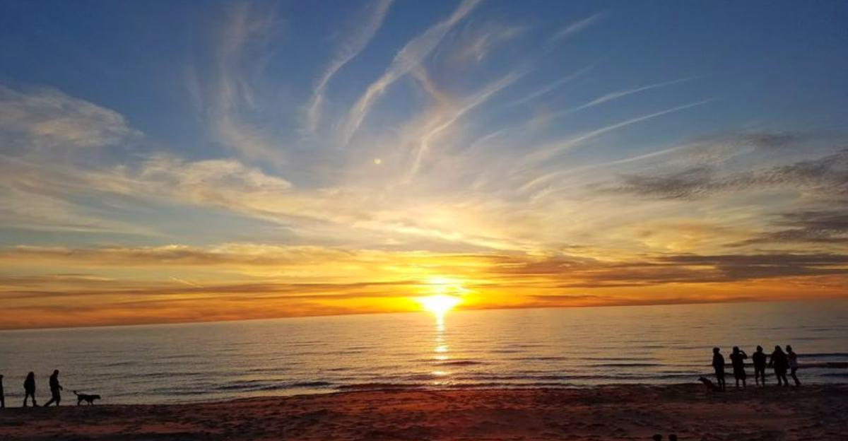 In a tiny village along Lake Michigan, the sunsets don’t just look good – they stop people mid-sentence. The sky shifts through orange, pink, and deep purple, the waves roll in quietly, and first-time visitors usually just stand there, taking it all in.