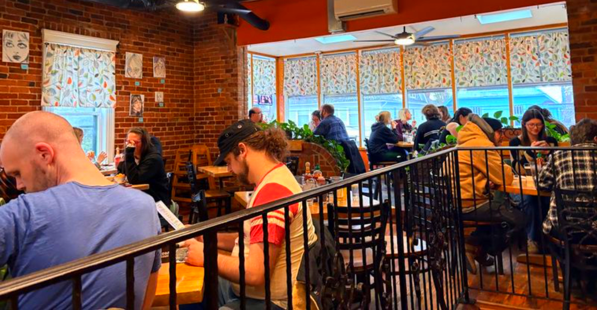 Inside, the room stays casual, the coffee keeps coming, and the staff moves like they’ve known you for years. One detail about the bread catches most first-timers off guard.