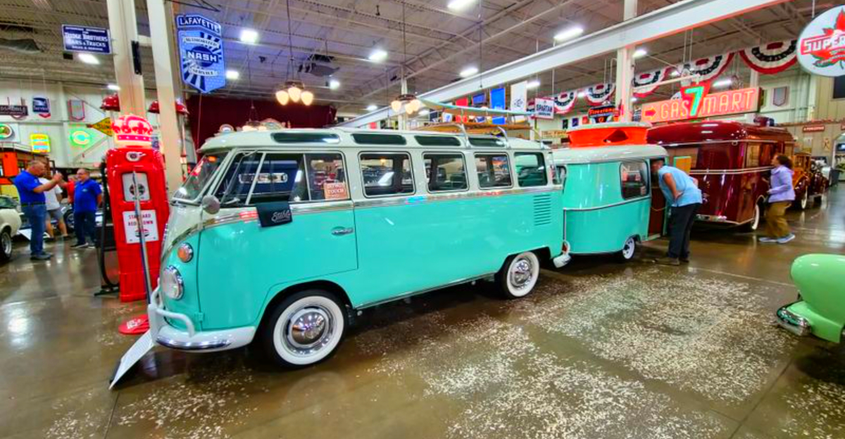 Open the door and the temperature shifts, the air faint with oil and wax as a Wurlitzer organ breathes to life. Every step carries you past cars and machines that feel pulled from another era – except here, they still run, sing, and shine.