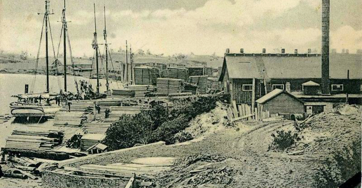 Singapore had not one but three operating sawmills at its height, along with a general store, a hotel, and a functioning port that connected the town to broader markets. The Kalamazoo River made log transport relatively straightforward, and the town’s infrastructure grew to support the constant flow of raw timber.