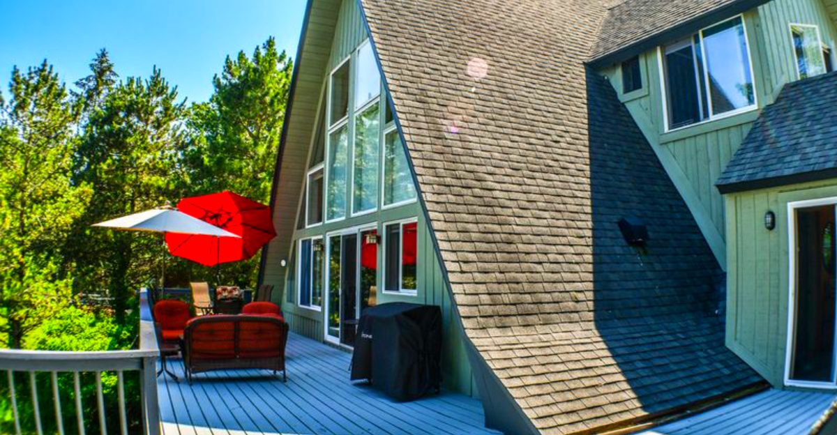 A-frame architecture has a way of making you feel like you are inside a treehouse and a magazine spread at the same time, and this one delivers on both counts.