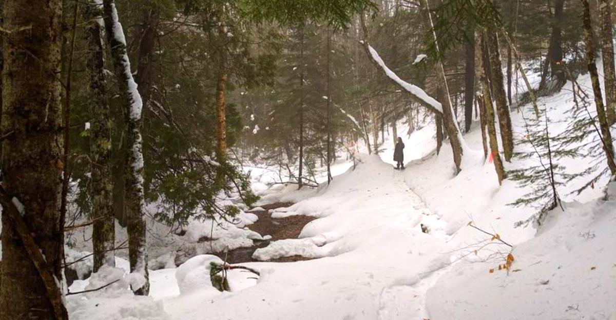 There is visual variety too, which matters more than people admit on longer winter excursions. One moment the woods feel dense and shadowed, and the next the trail opens just enough to brighten the snow and make every surface glow a little.