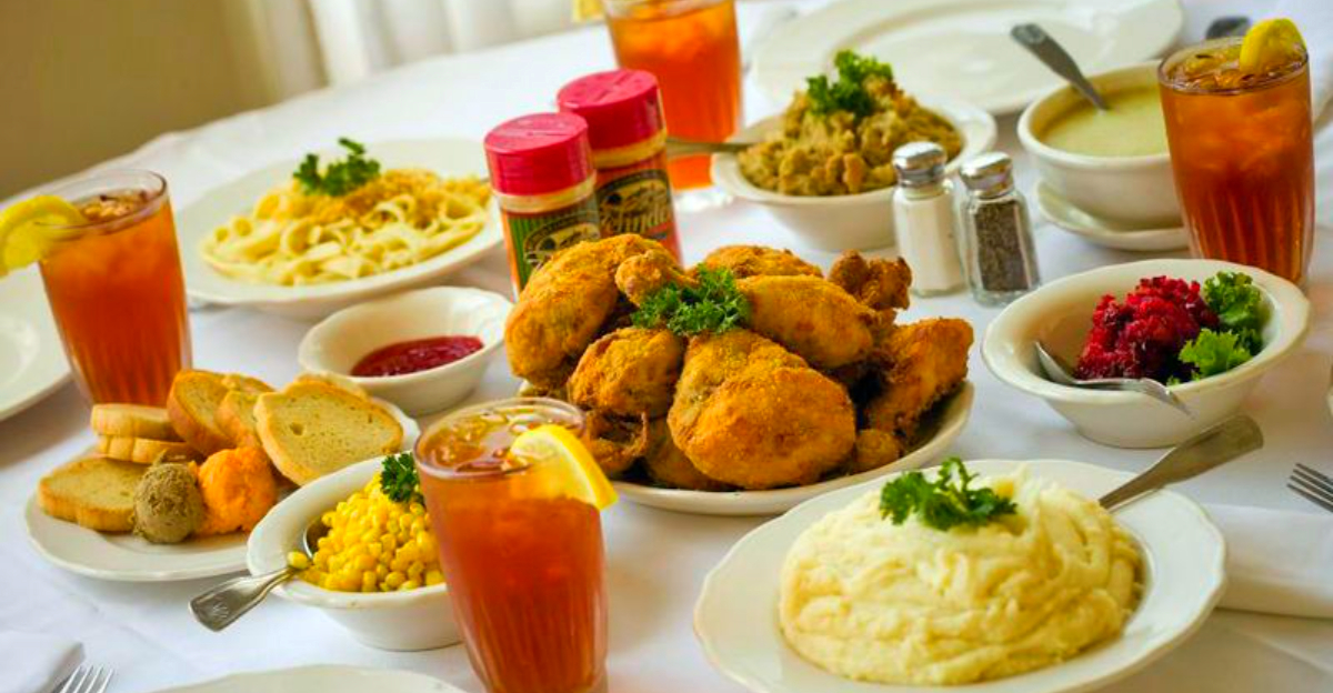 I caught myself grinning at a framed photograph near my table. Families in earlier eras looked just as ready to pass bowls as the folks seated today.