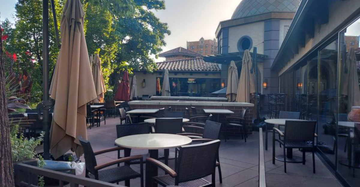 The patio is where the restaurant’s rhythm meets the Plaza’s energy. Warm lighting, clinking glasses, and a low hum of conversation set the tone.