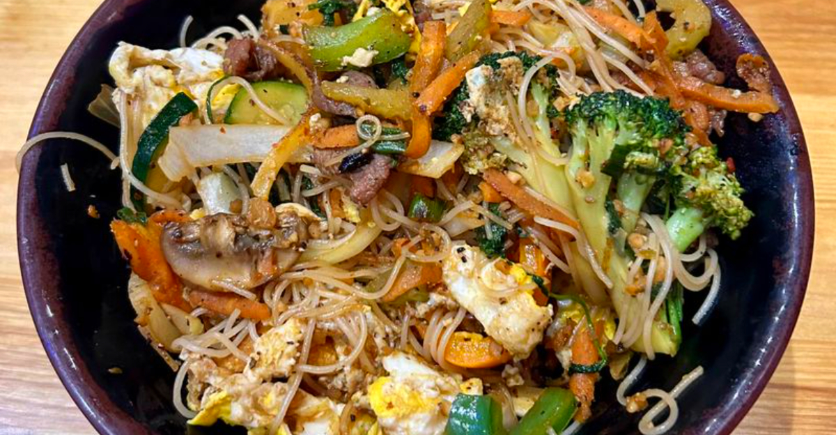Start with a base. Lo mein noodles give chew, rice keeps it light, and skipping starch lets vegetables take the lead.