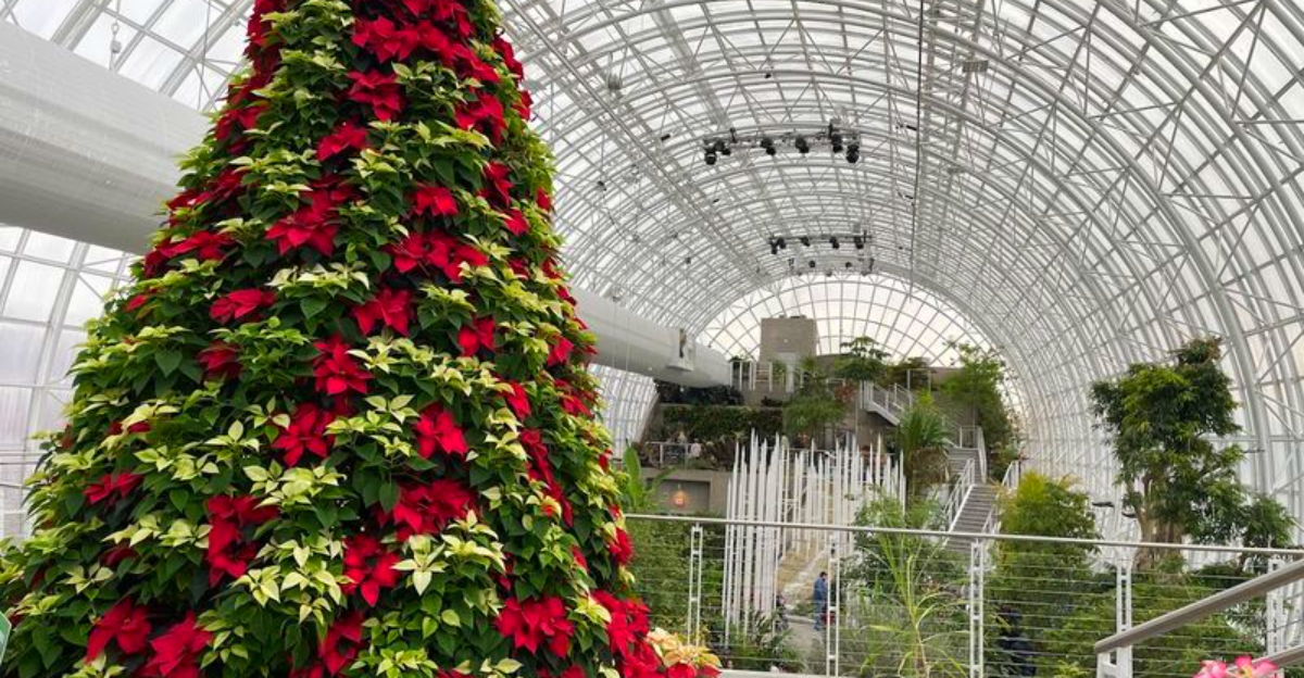 The fall Pumpkinville festival draws crowds with thousands of pumpkins arranged across the grounds in creative displays, and the overall atmosphere shifts into something festive and family-friendly. The holiday season brings its own magic, including a dramatic poinsettia tree installation inside the conservatory that becomes a favorite photo stop for visitors of all ages.