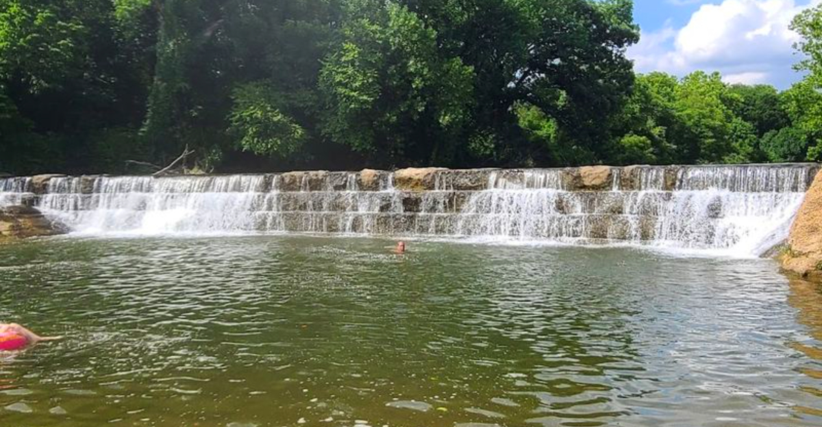 The tree canopy overhead provides intermittent shade, which is a genuine blessing during a July afternoon in Oklahoma when the sun has no mercy. The combination of cool water, shaded banks, and easy access makes this feel less like a rugged outdoor adventure and more like a neighborhood pool that nature built.