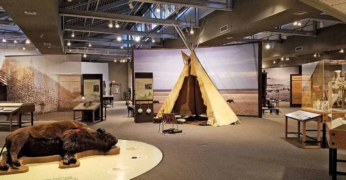 The exhibits trace the lives of the first peoples who crossed the Great Plains, hunted massive Pleistocene animals, and built cultures long before European contact.