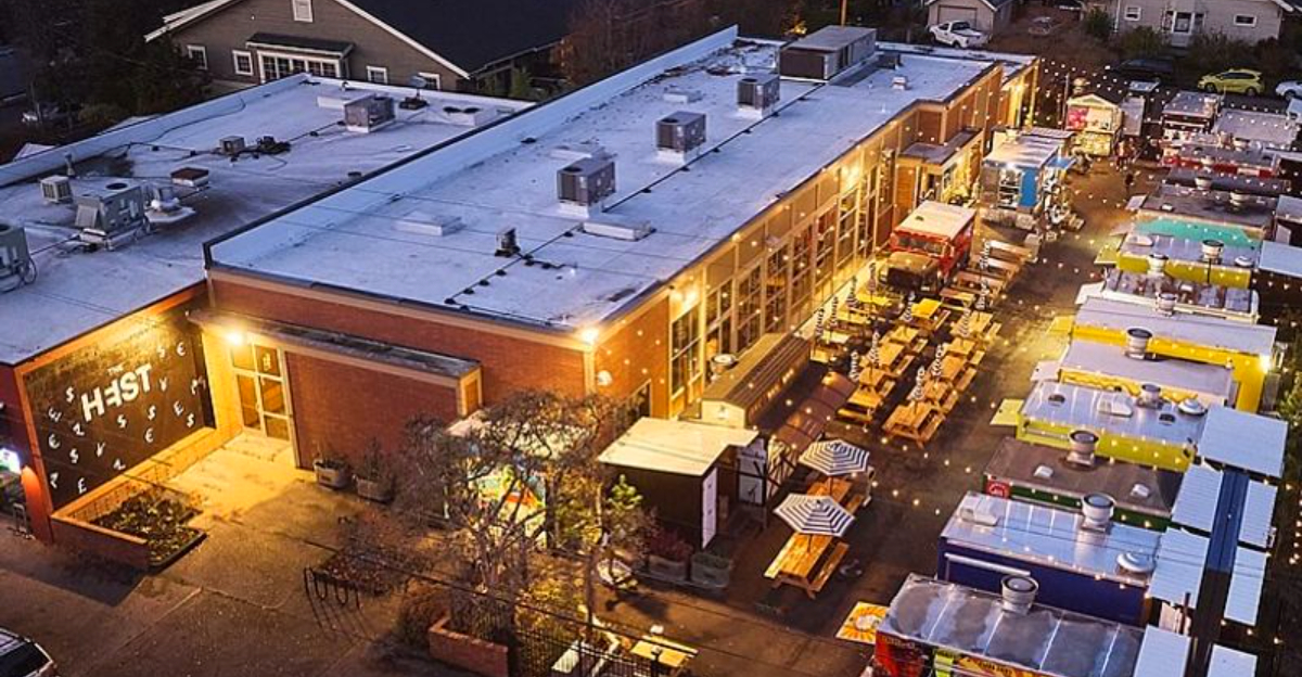 Style meets substance at this contemporary food cart pod designed with groups in mind. The Heist features modern covered seating and carefully selected vendors who deliver restaurant quality food in a casual cart format.