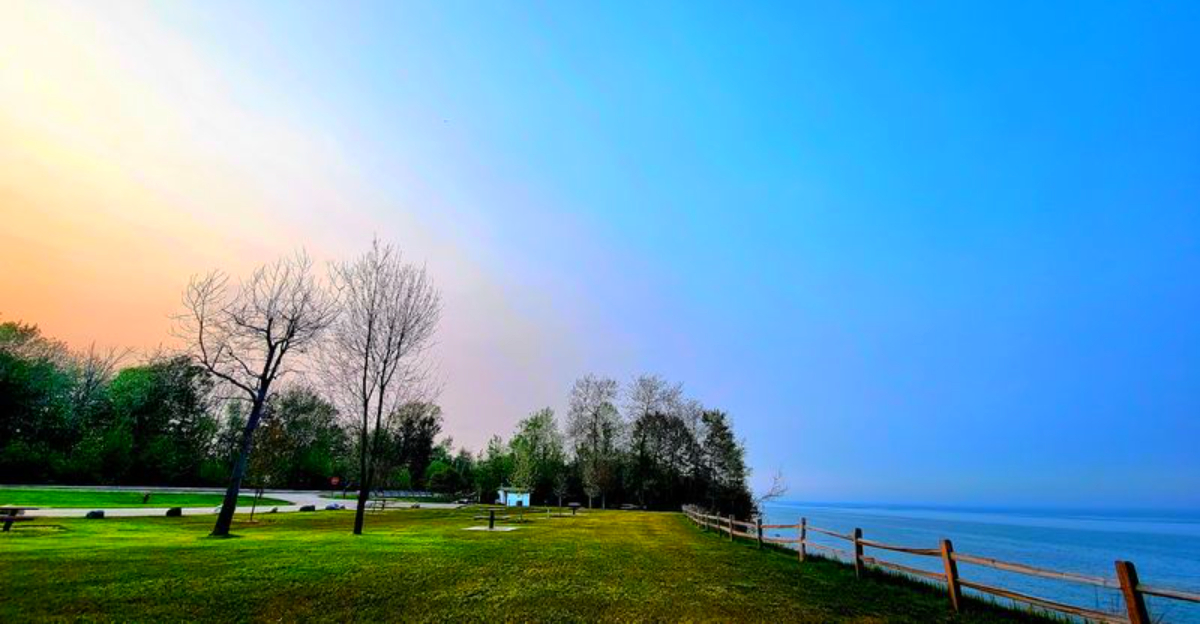 The eastern orientation of this park makes it one of the better sunrise-watching spots on Michigan’s Thumb. The lake sits directly in front of the overlook, so when the sun rises, it comes up right over the water with nothing in the way.