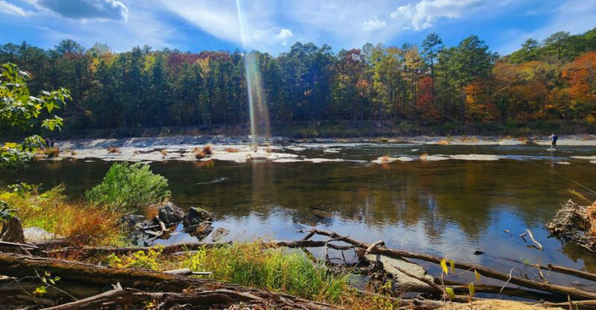 The Mountain Fork River cuts right through the park, and its clear, cold water draws fly fishers from across the region. Trout are stocked regularly, and the river stretches long enough that you can usually find a quiet bend to yourself even on a busy weekend.