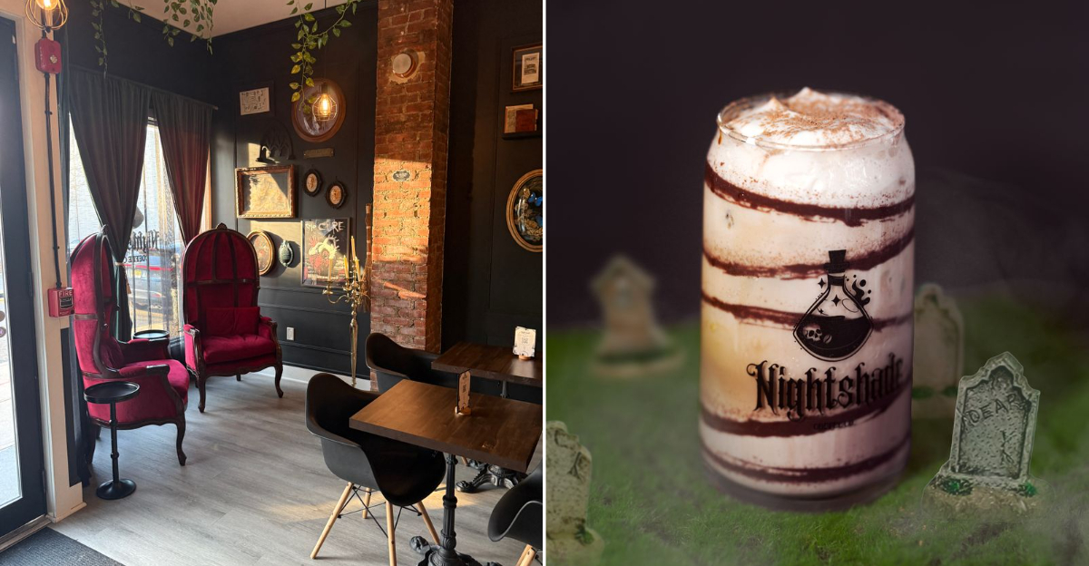 Nightshade Coffee in Westwood, New Jersey delivers exactly that. The space feels gothic and theatrical, with velvet touches, skull decor, and Edgar Allan Poe nods that are hard to miss.