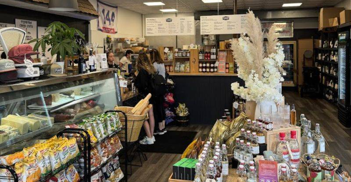 The storefront is clean and compact, with a setup that blends a traditional deli counter with a curated retail space. Cold cuts, grab-and-go items, charcuterie boards, and a selection of bottles share the same square footage without feeling cluttered.