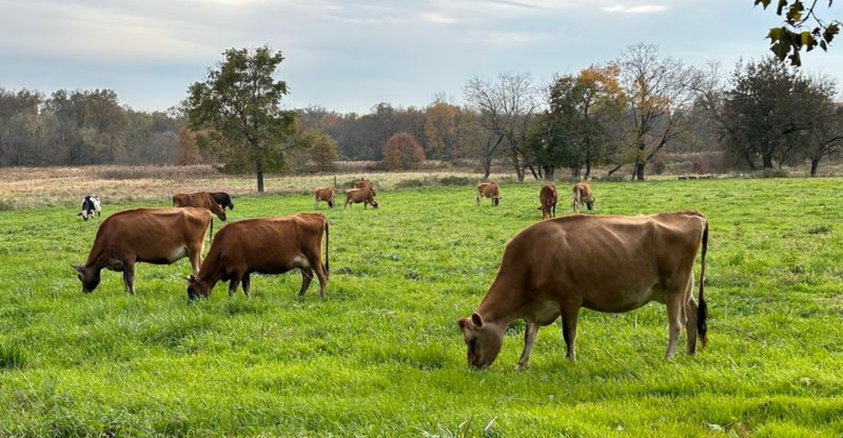 The land itself carries that kind of quiet weight that comes with decades of continuous use. Pastures roll out behind the buildings, and the herd of dairy cows that produces the farm’s milk is a visible part of daily life here.