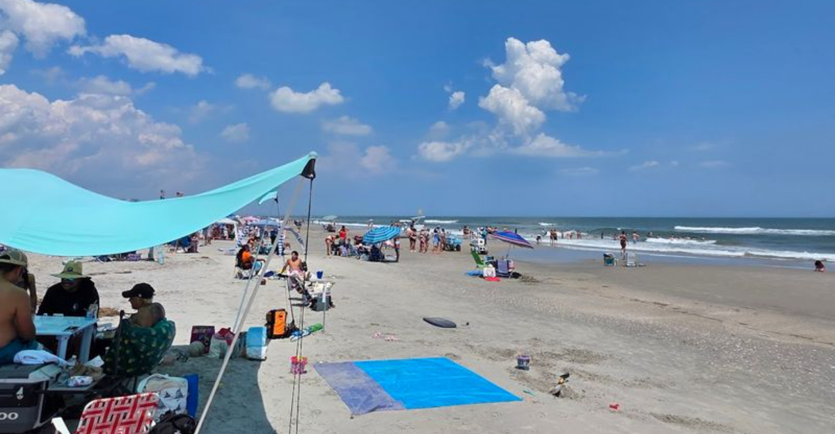 Even at high tide, the beach holds enough depth to comfortably fit a good number of visitors while keeping plenty of personal space between groups. That is not something you can say about every Jersey Shore beach during peak summer.