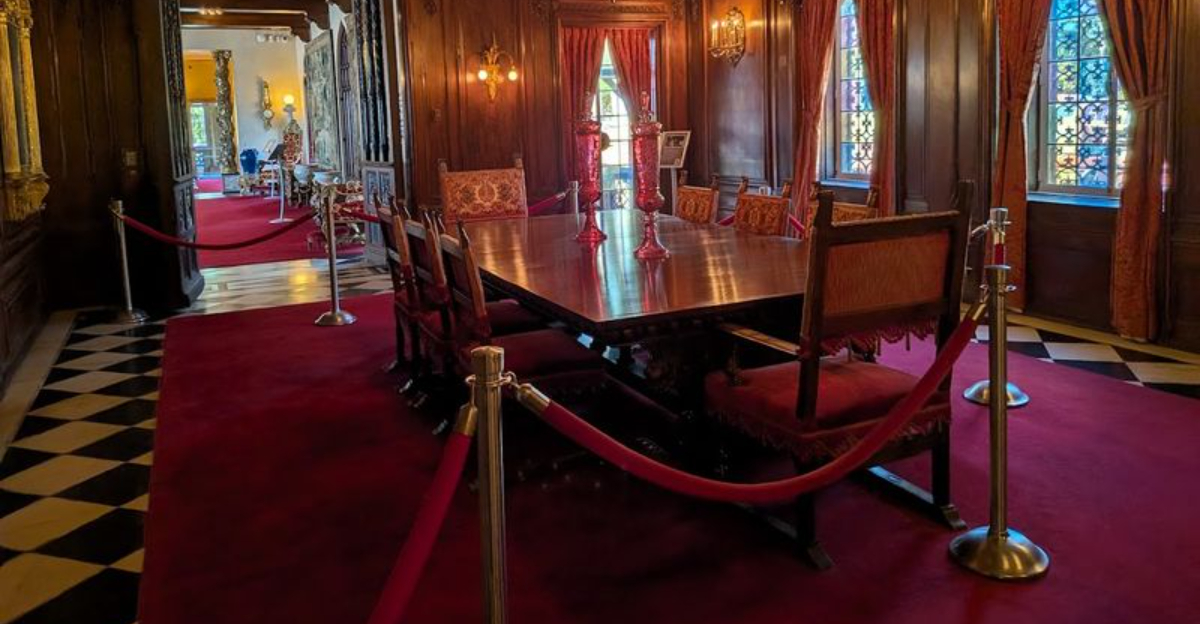 Her personal taste leaned toward rich textiles, hand-painted ceilings, and antique European furnishings that she sourced with the same intensity her husband brought to running the circus. The result is an interior that feels more like a curated museum than a lived-in house, which is fitting given what it eventually became.