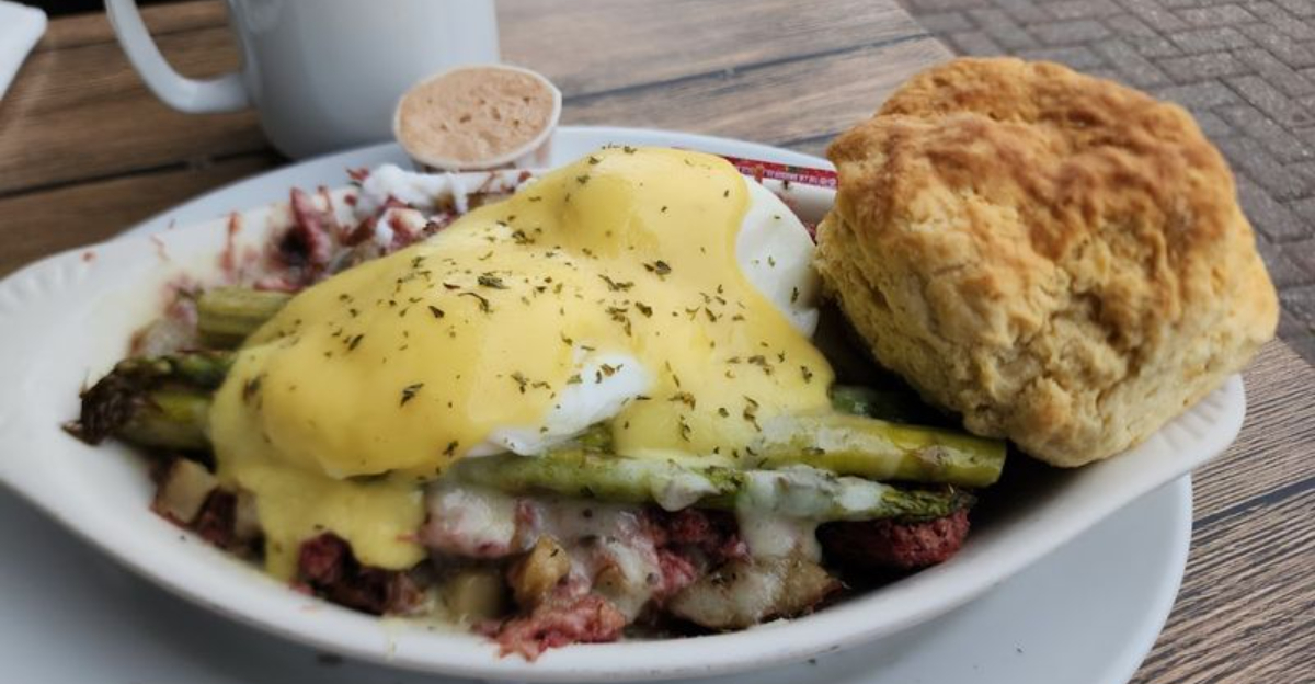 Eggs Benedict at The Buttered Biscuit comes in multiple variations, which gives the dish more range than the classic version alone would offer. One popular iteration features lox and spinach, while another, known as Eggs Oscar, is built around crab, poached eggs, and asparagus.