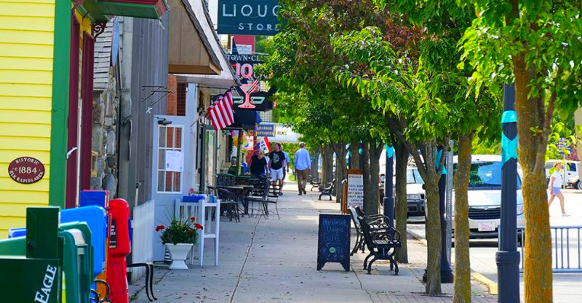 Small-town downtowns can sometimes feel like a single gift shop repeated five times, but Elk Rapids manages to avoid that trap entirely. The downtown strip is compact, walkable, and genuinely varied, mixing antique shops with specialty boutiques, local crafts with curated home goods.