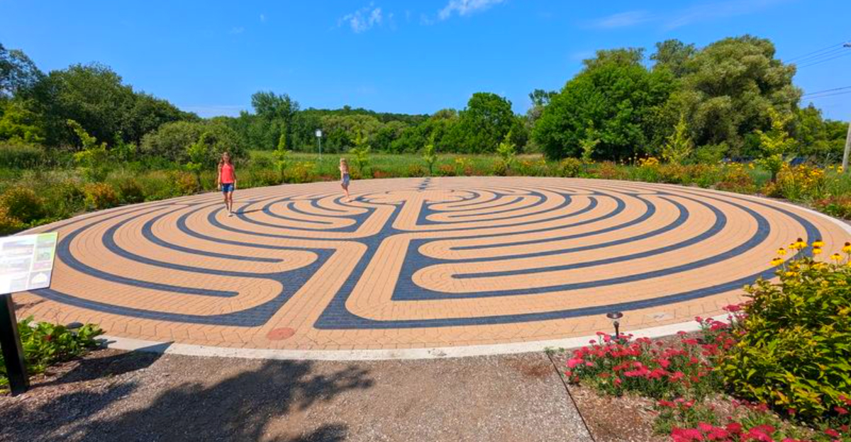 Some of the best surprises at this garden are the ones you almost walk right past. Near the parking lot, a brick labyrinth sits quietly, inviting visitors to slow down before they have even officially started their tour.