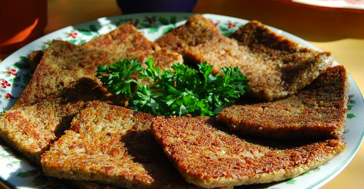 The result is savory, rich, and hearty—perfect alongside scrambled eggs and toast. It’s similar to scrapple from Pennsylvania but has its own distinct flavor and texture.
