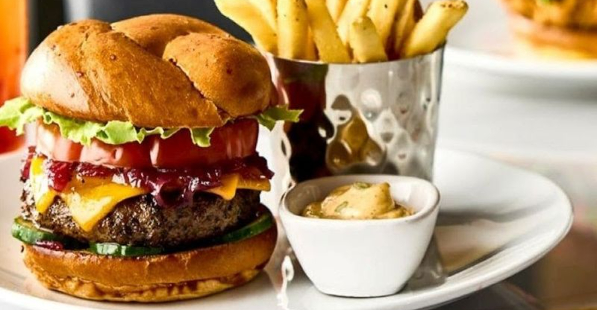 The Capital Grille’s lone burger blends chopped sirloin with smoked bacon and sweet onions right in the patty itself. It is then topped with caramelized onions, Wisconsin Grand Cru Gruyere and a shallot aioli, typically served with truffle fries.