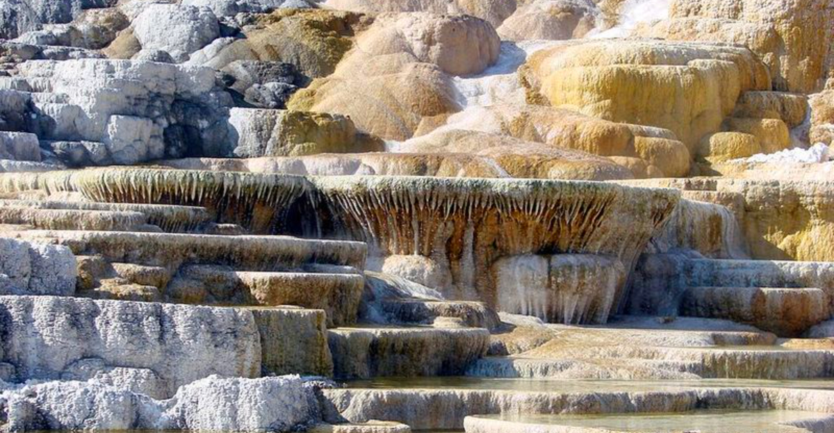 Calcium carbonate creates magic at Mammoth Hot Springs, where underground hot water dissolves limestone before surfacing at around 170 degrees Fahrenheit. As the water cools, it deposits travertine minerals that build up over thousands of years into spectacular stair-like terraces. This process makes Mammoth completely different from Yellowstone’s geyser basins.